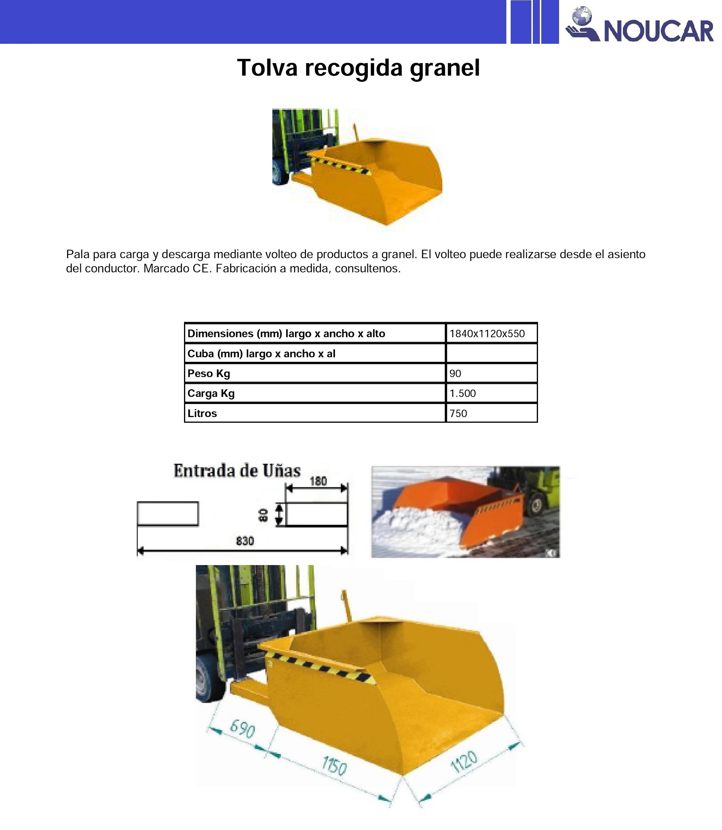 Tolva para Carretilla para Recogida de Granel 750 l./1.500 Kg.