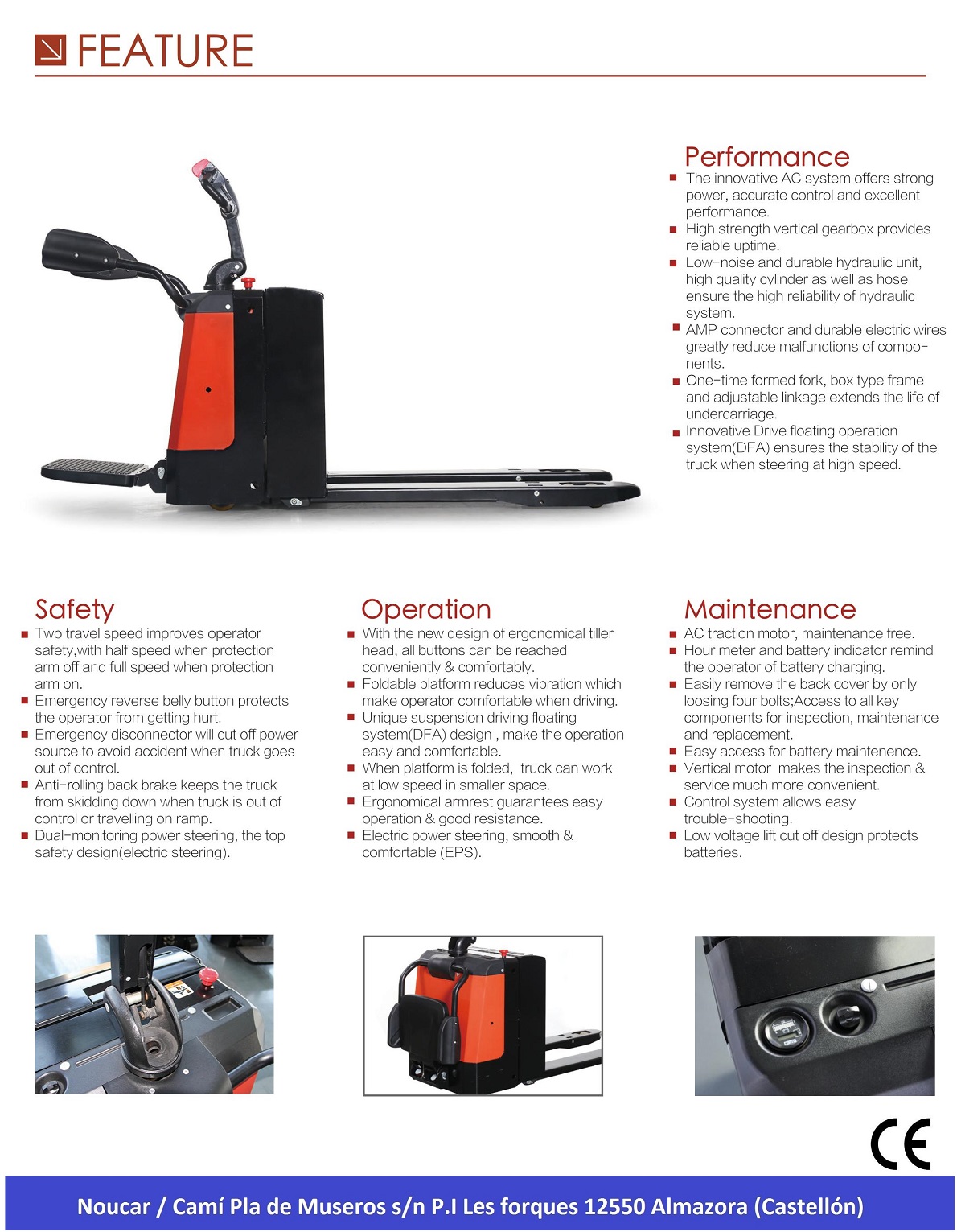 Transpaleta eléctrica con plataforma 2.500 kg.